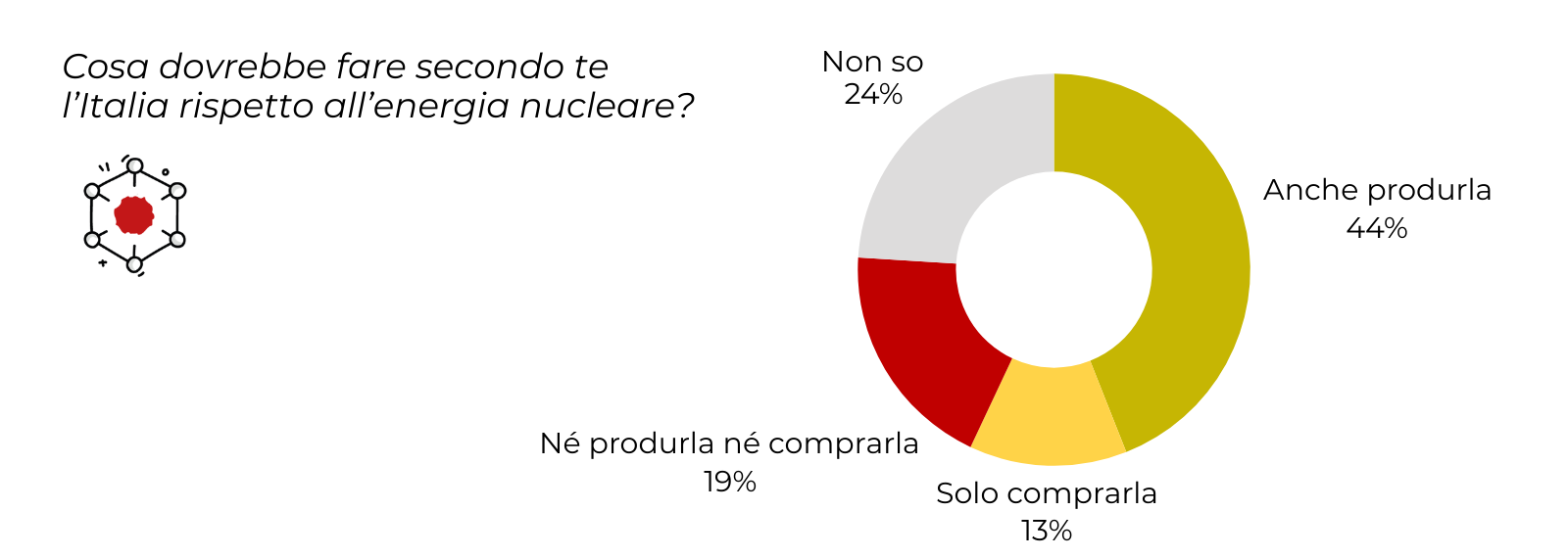 Al contrario, circa il 25% dei rispondenti non sa bene come porsi rispetto alla questione (soprattutto tra i 65-74enni), mentre quasi il 20% non vorrebbe proprio che questa energia venisse utilizzata dal nostro Paese.